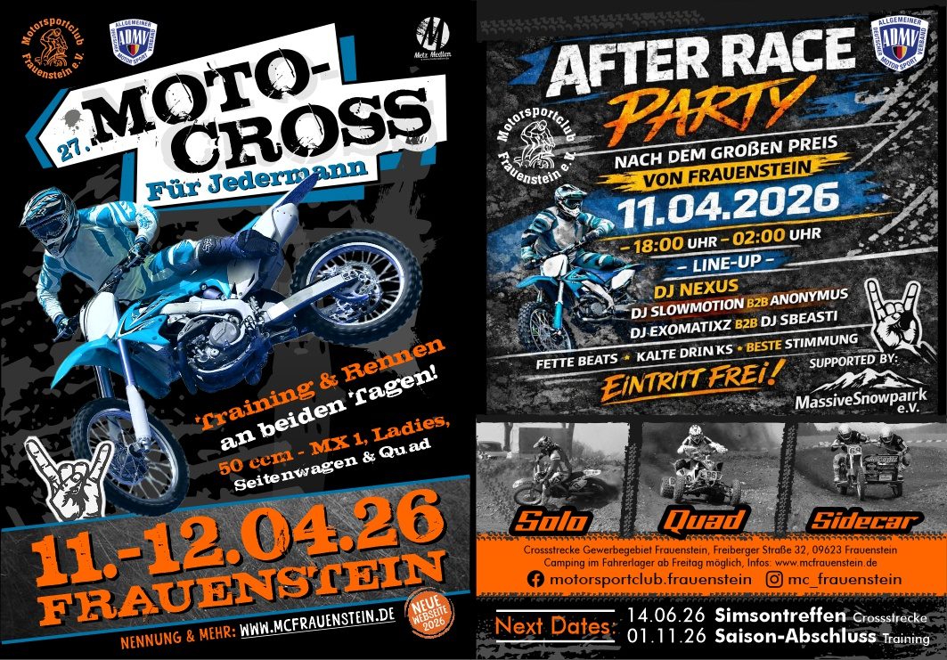 Ende April ist unser MX-Track wieder für euch bereit...seid dabei, wenn die Staubschicht aufgewirbelt wird und die Fahrer ihr Können zeigen.